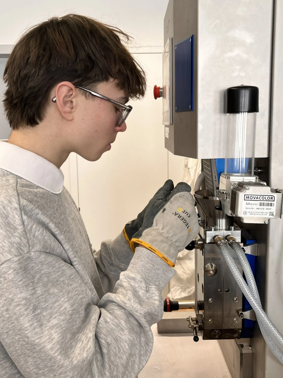 Im ersten Praktikum standen Kunststoffe im Mittelpunkt: Verschiedene Proben wurden untersucht, getestet und charakterisiert – ein spannender Einblick in die Materialwissenschaften, der zeigte, wie vielfältig und alltagsrelevant dieses Gebiet ist.